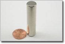 12mm dia. x 50mm thick Neodymium Cylinder Magnet - NdFeB N38 - NiCuNi Plated - Axially Magnetized through 50mm thickness (poles located on flat ends)